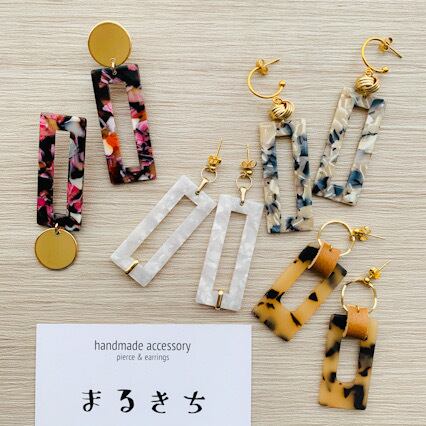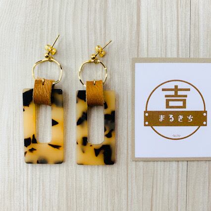 スクエアピアス○べっ甲柄×レザー○大人きれいピアス