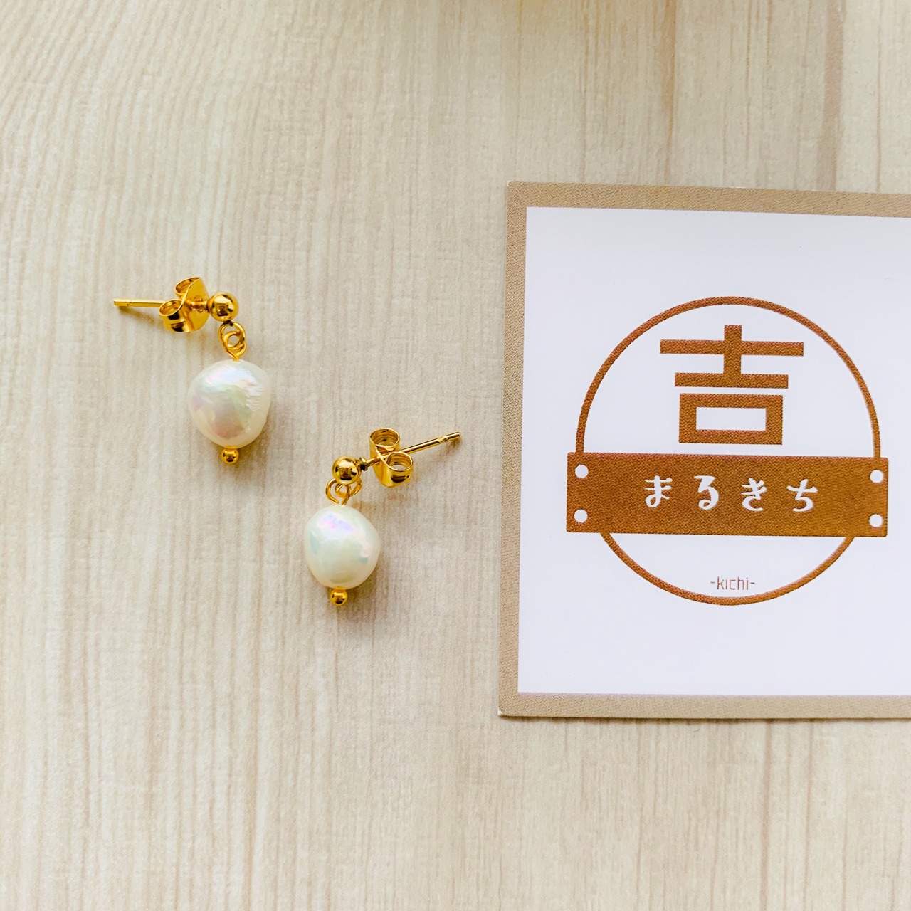 淡水パールが揺れる、小ぶりで可愛い、ちょこんとピアスです。