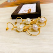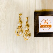 パールビーズとワイヤーくるくるチャームを合わせた、大ぶり大人ピアス。