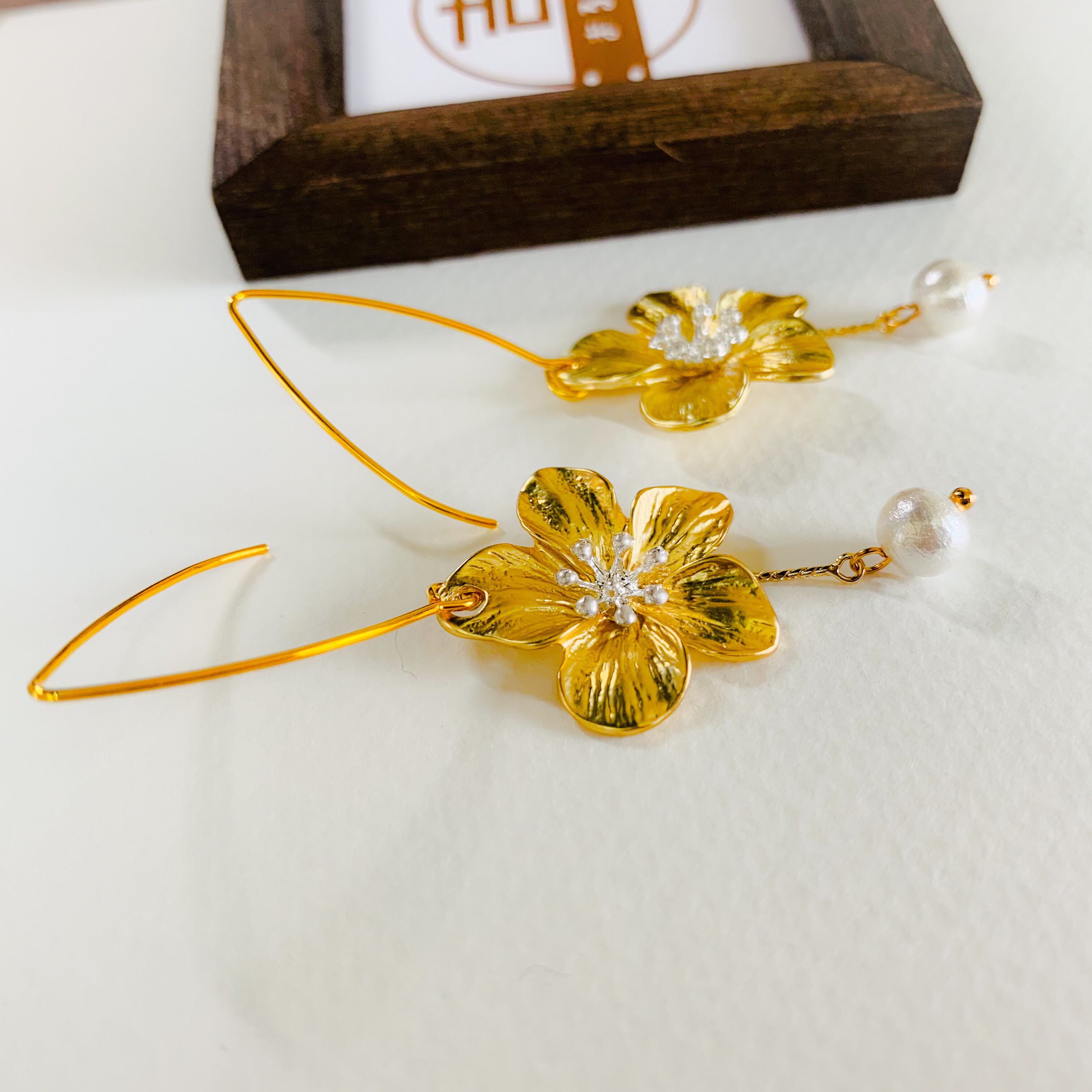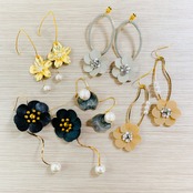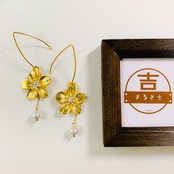 フラワーピアス○お花×コットンパール○お花とパールが揺れるV字フックピアス