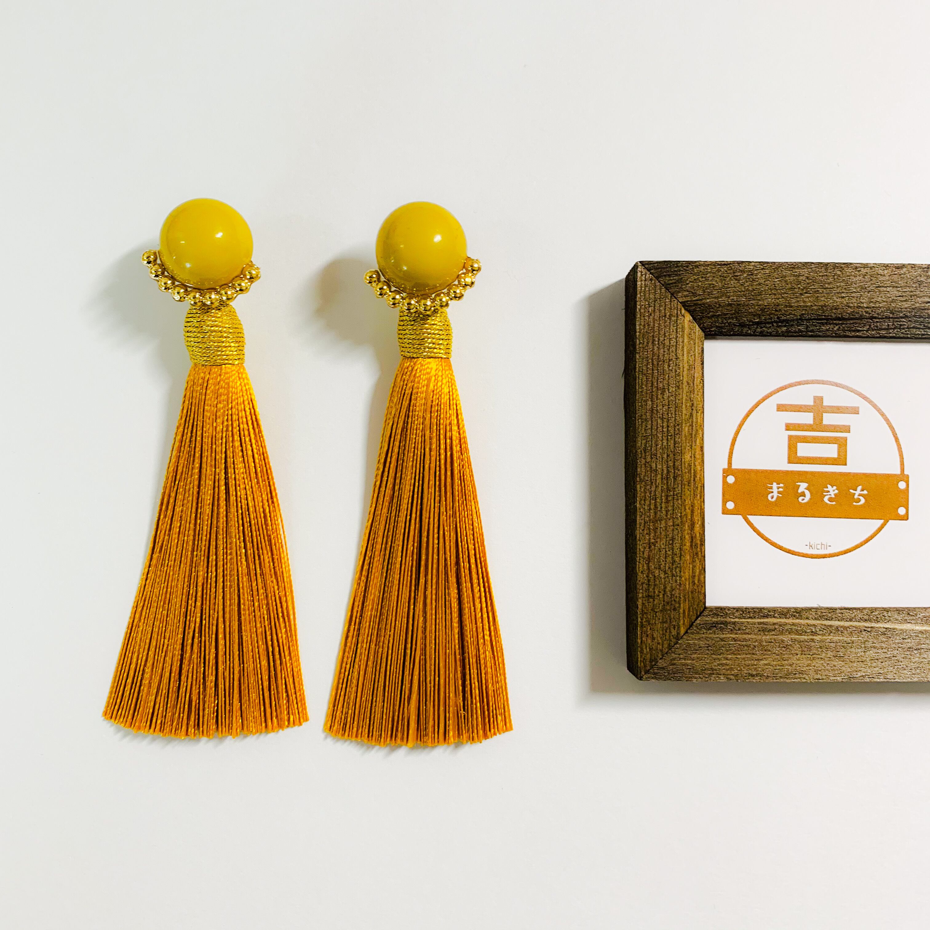 タッセルピアス○イエロー×イエロー○イエローピアス○大ぶりで個性的な2wayピアス