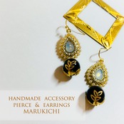 雫型のチャームにビーズが揺れる、レトロピアスです。