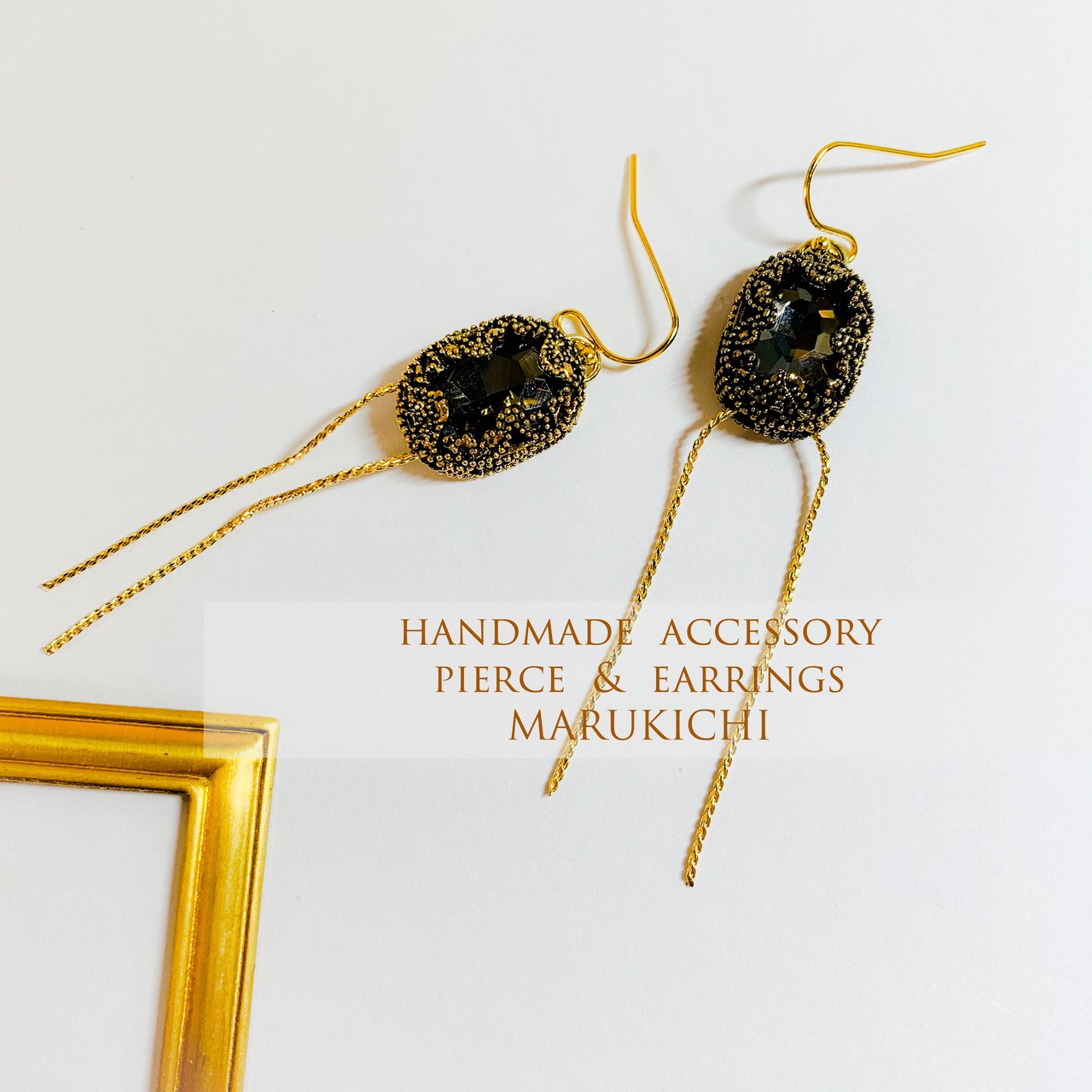 アンティークビジューとチェーンが揺れる、レトロピアスです。