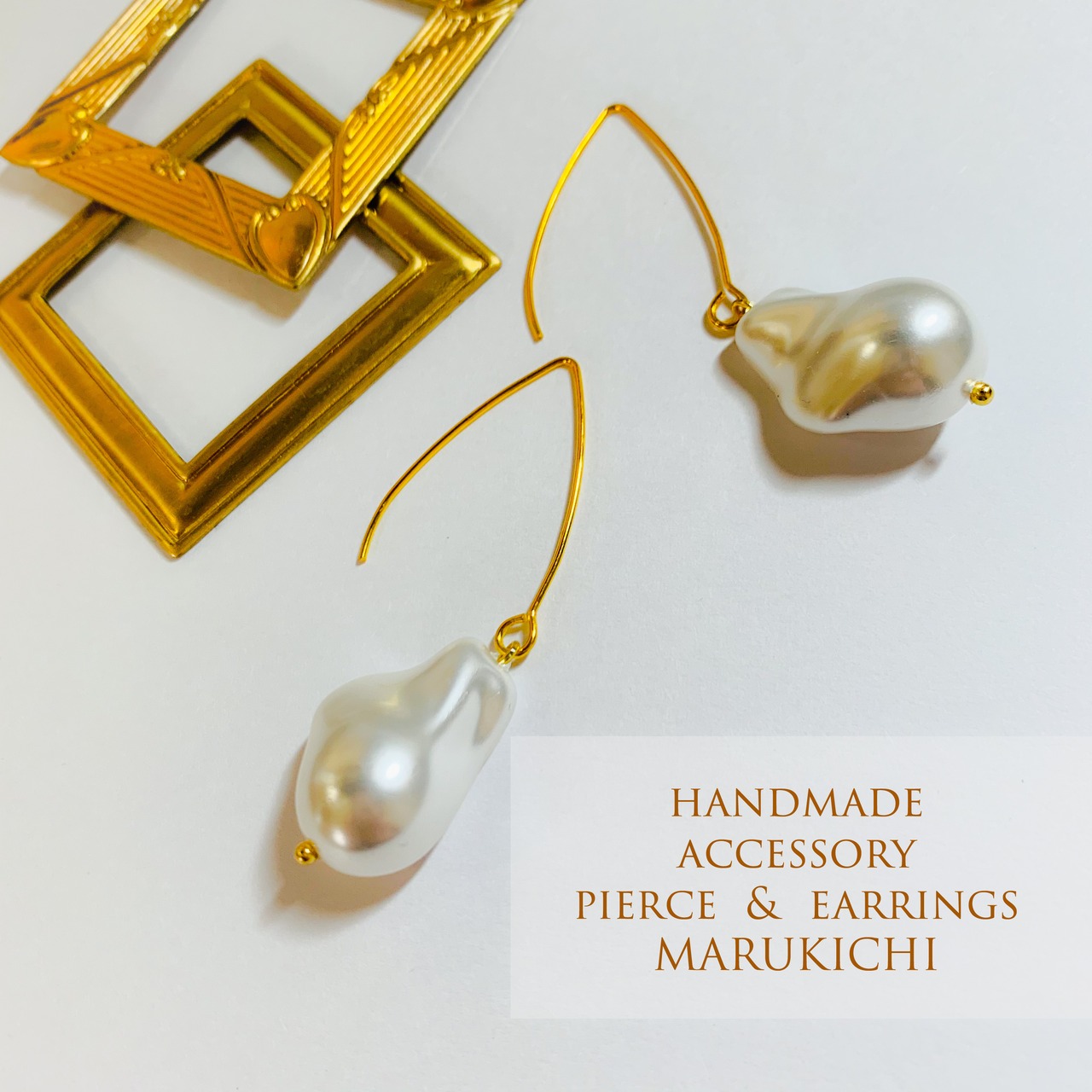 バロックパールピアス○大ぶりな一粒バロックパール風ビーズのシンプルピアス
