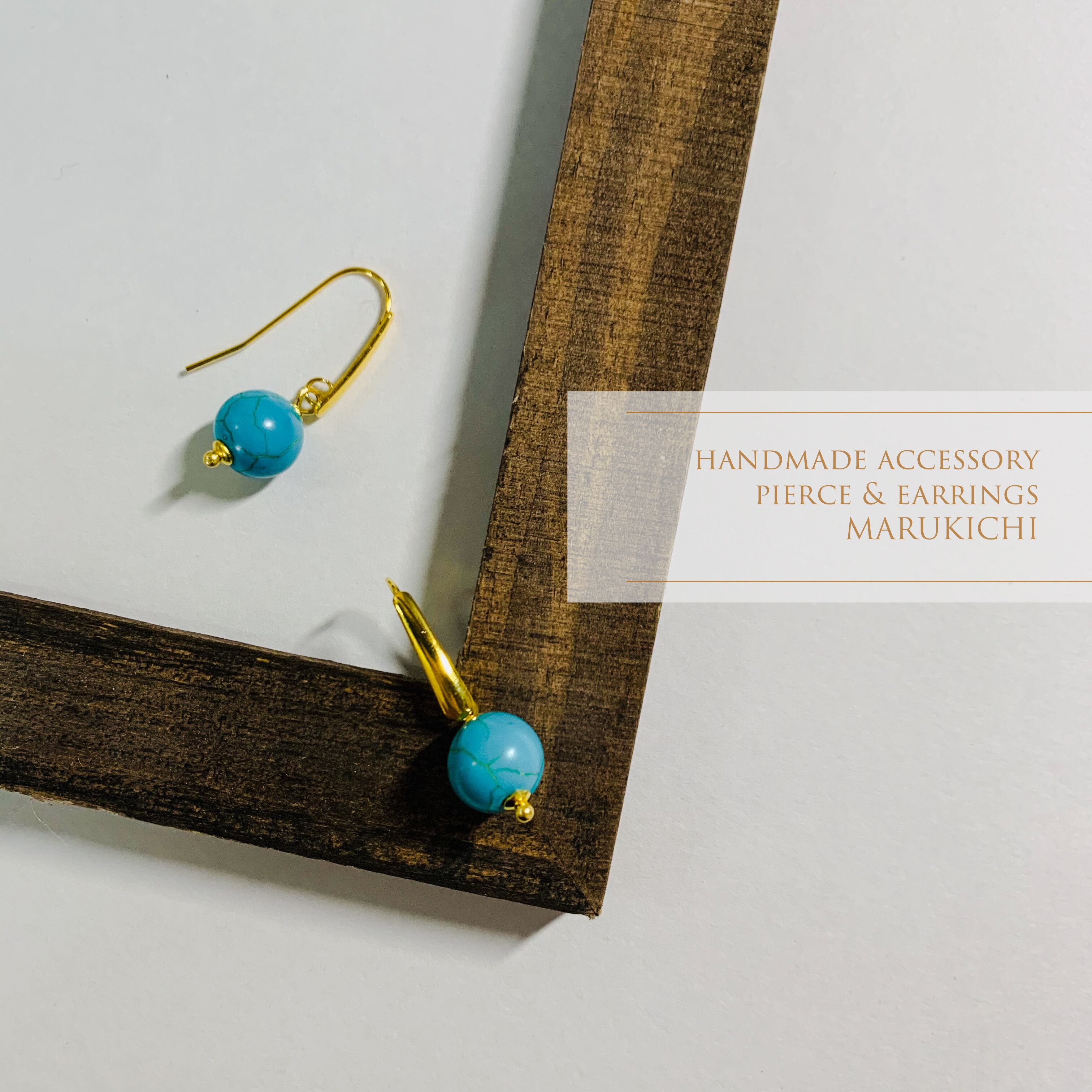 ターコイズピアス○一粒ターコイズ×デザインフック○大人シンプルサマーピアス