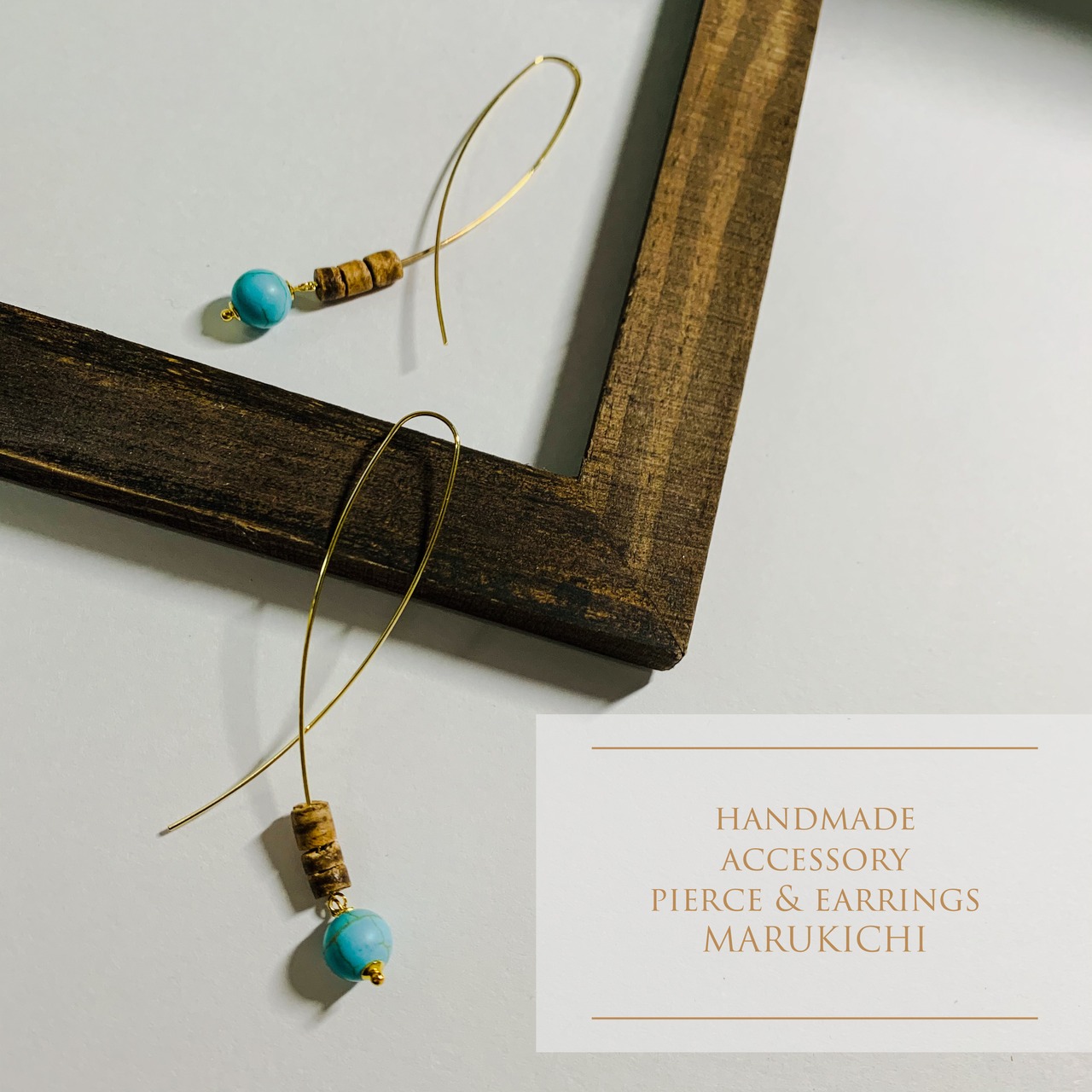 夏に使いたいターコイズとウッドのシンプルピアスです。