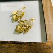 じゃらじゃらパールとアンティークリーフのかわいい大人ピアス。