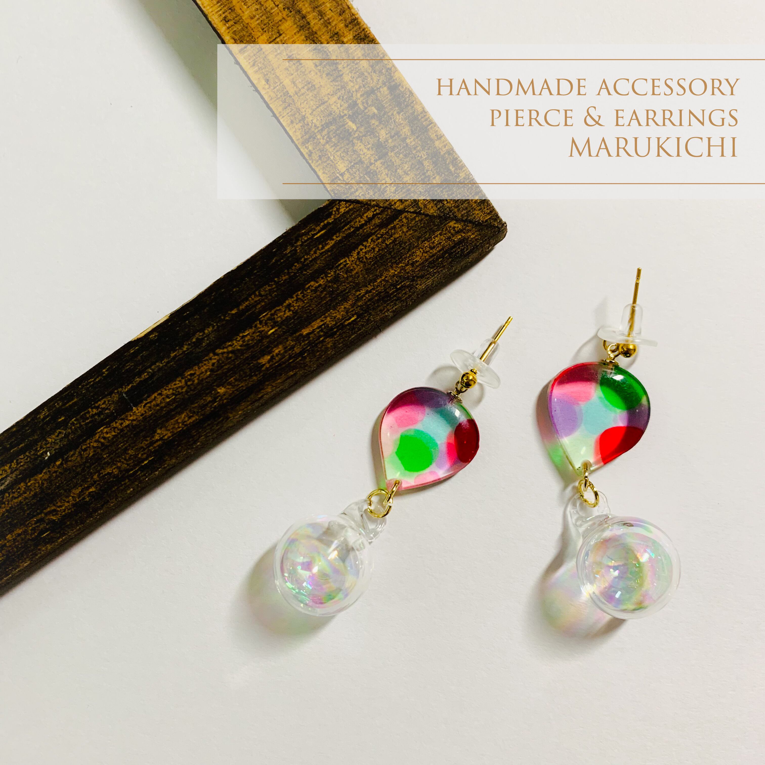 ガラスドームピアス○シャボン玉ピアス○カラフル×お水入りガラスドーム