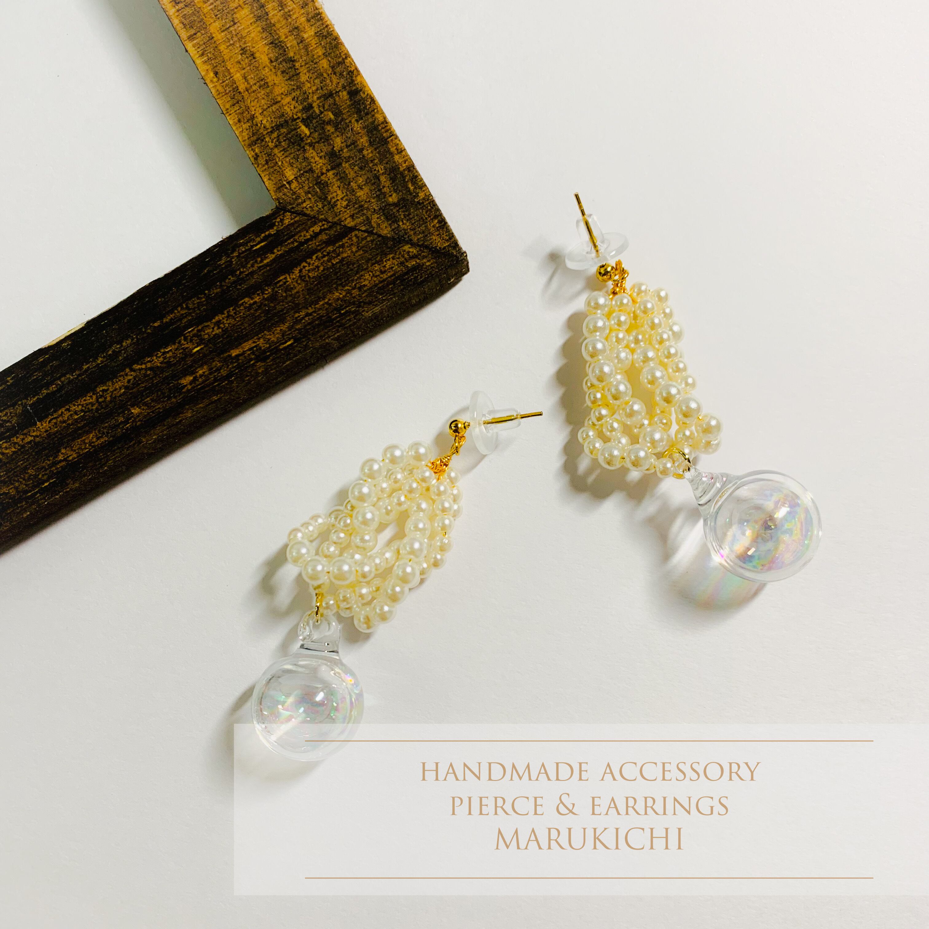 ガラスドームピアス○シャボン玉ピアス○じゃらじゃらパール×お水入りガラスドーム