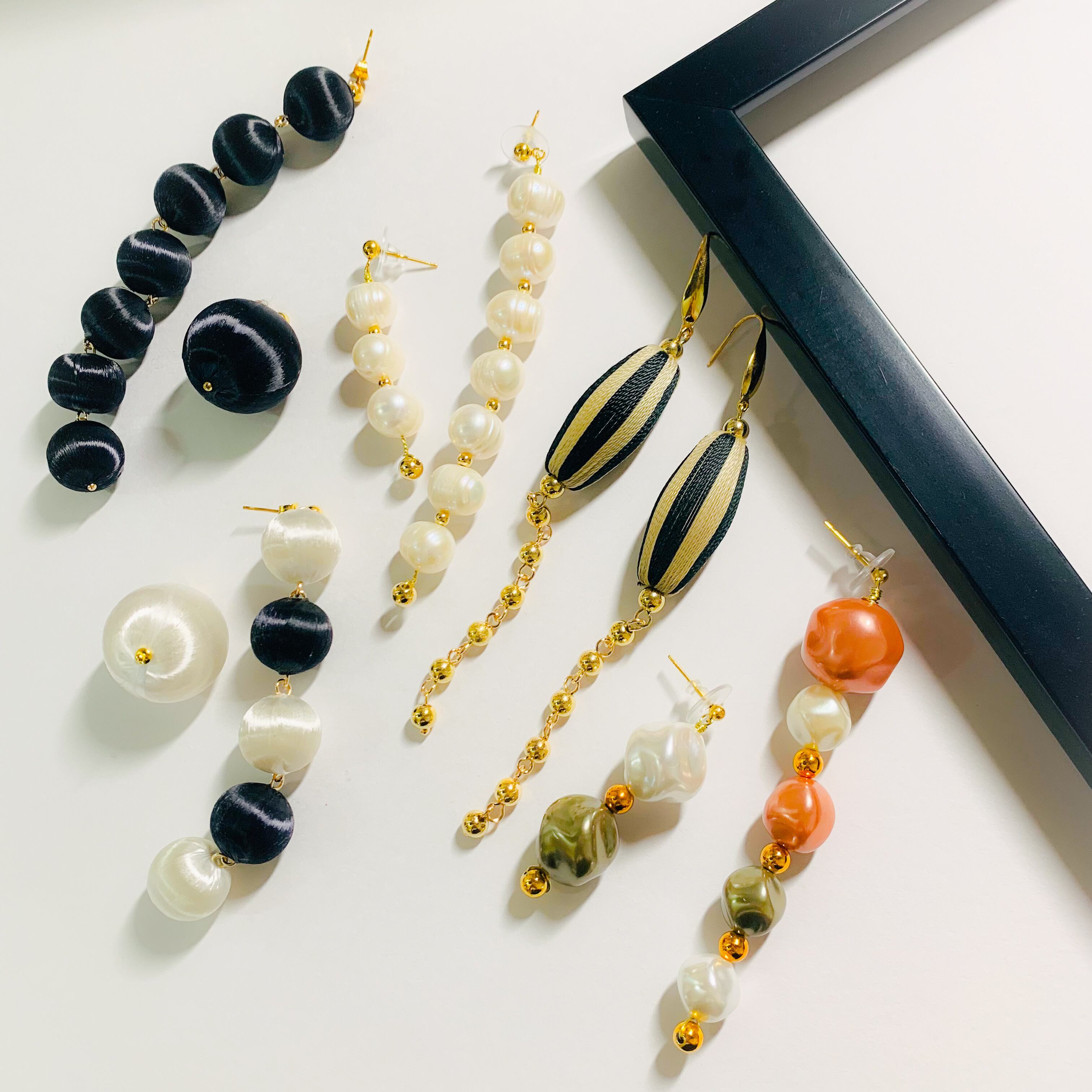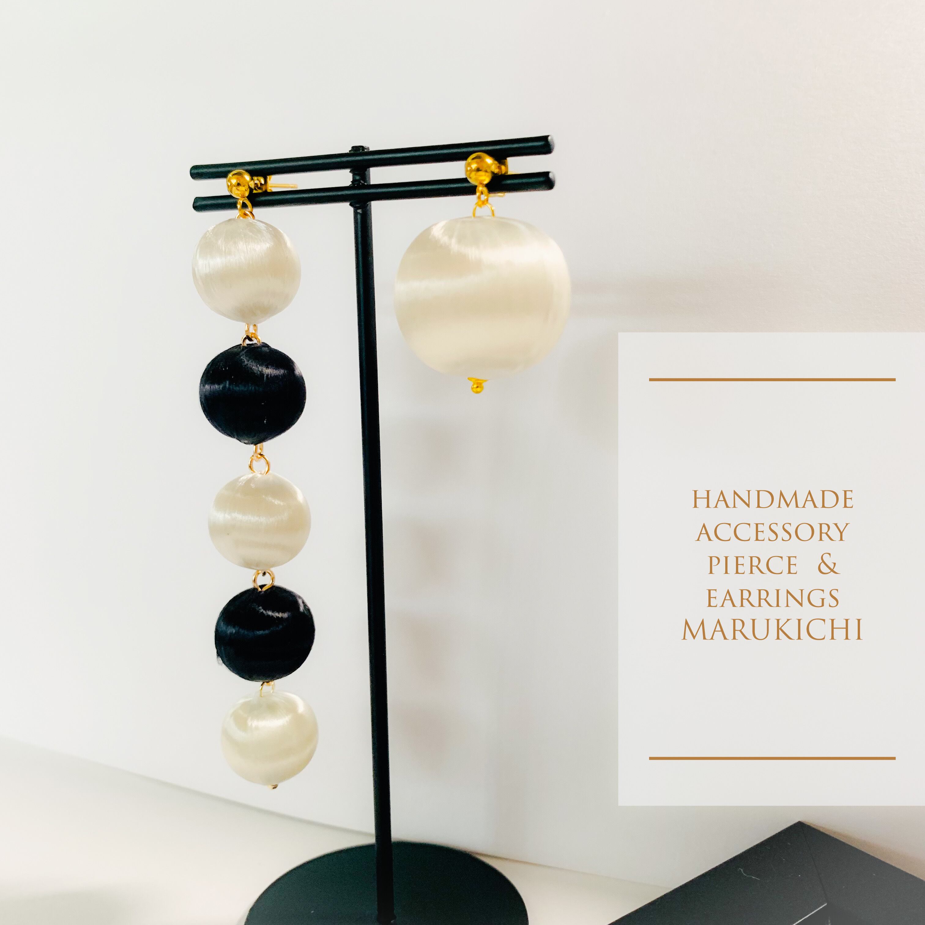 巻き玉ピアス○5連ボール×白黒○ロング白黒ピアス