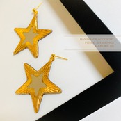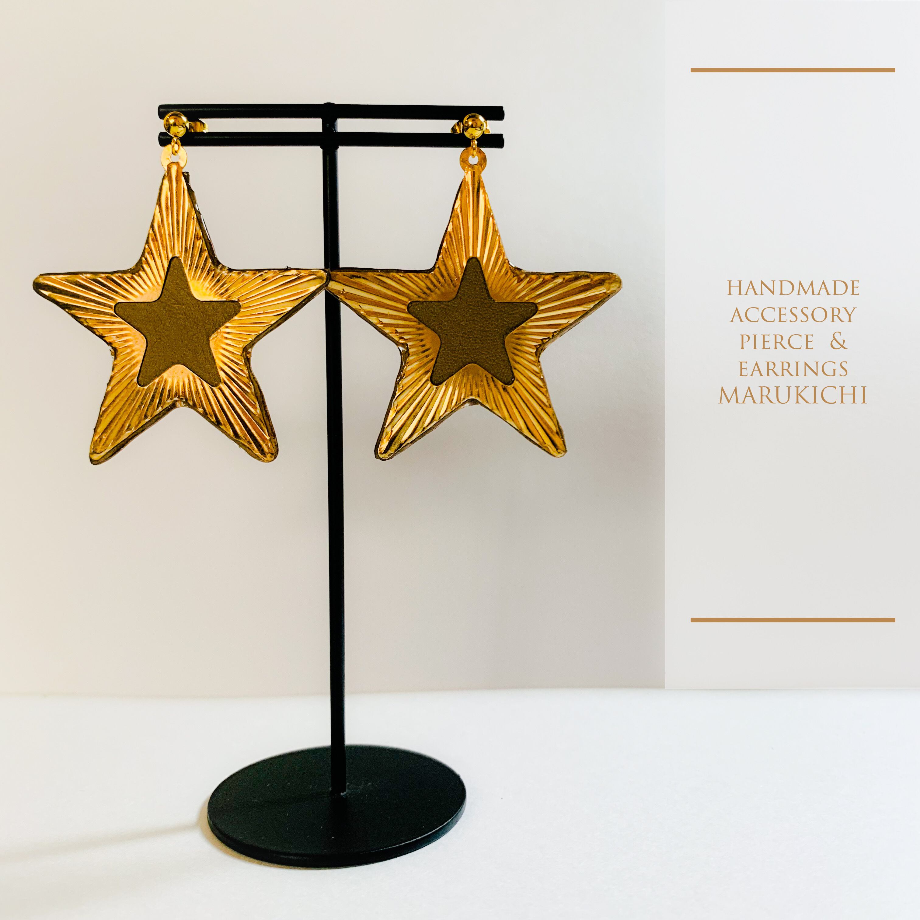 星形のアンティークプレートにレザーを張り合わせた大振りなスターピアス。