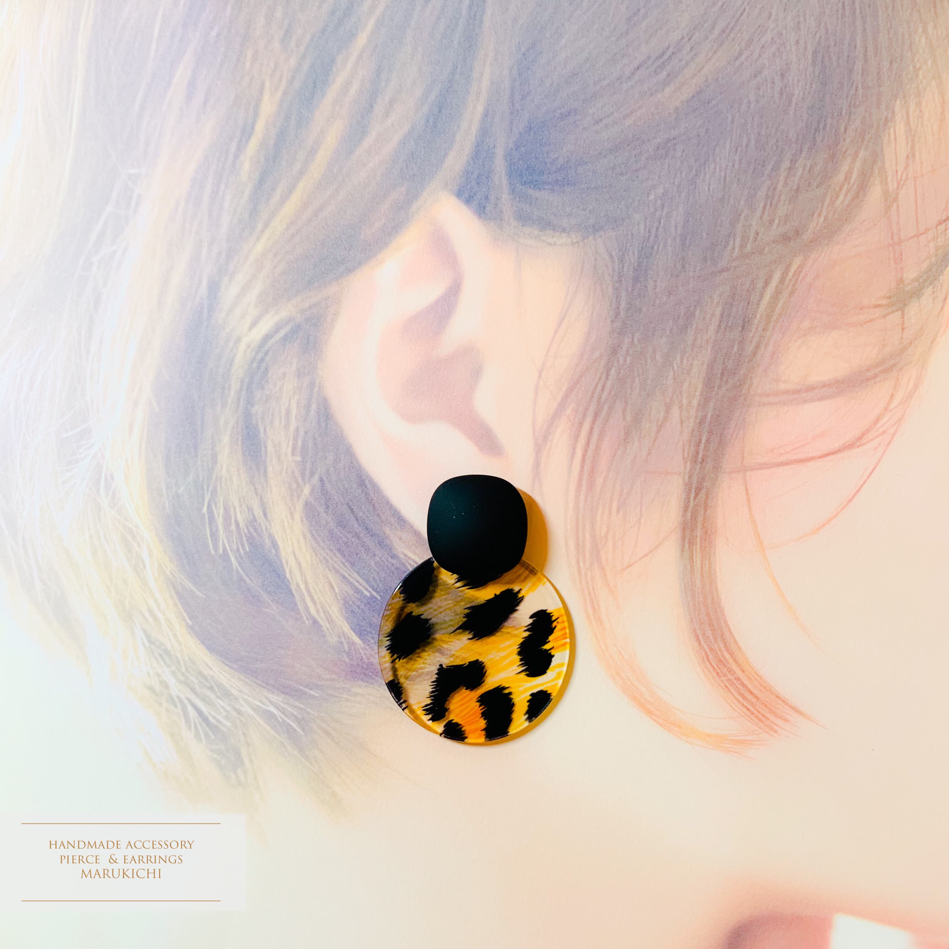 2wayピアス○レオパード×マットブラック○秋冬アニマルピアス