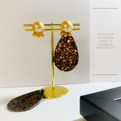 2wayピアス○ブラウンラメ×マットゴールド○大振りしずくピアス