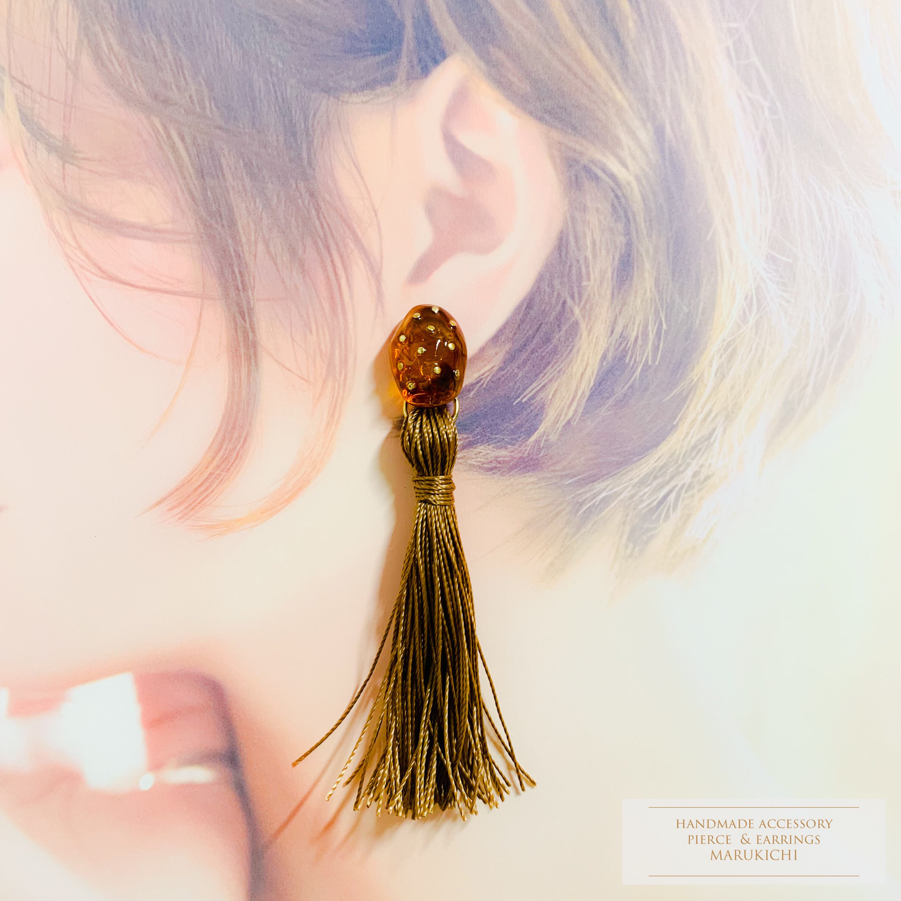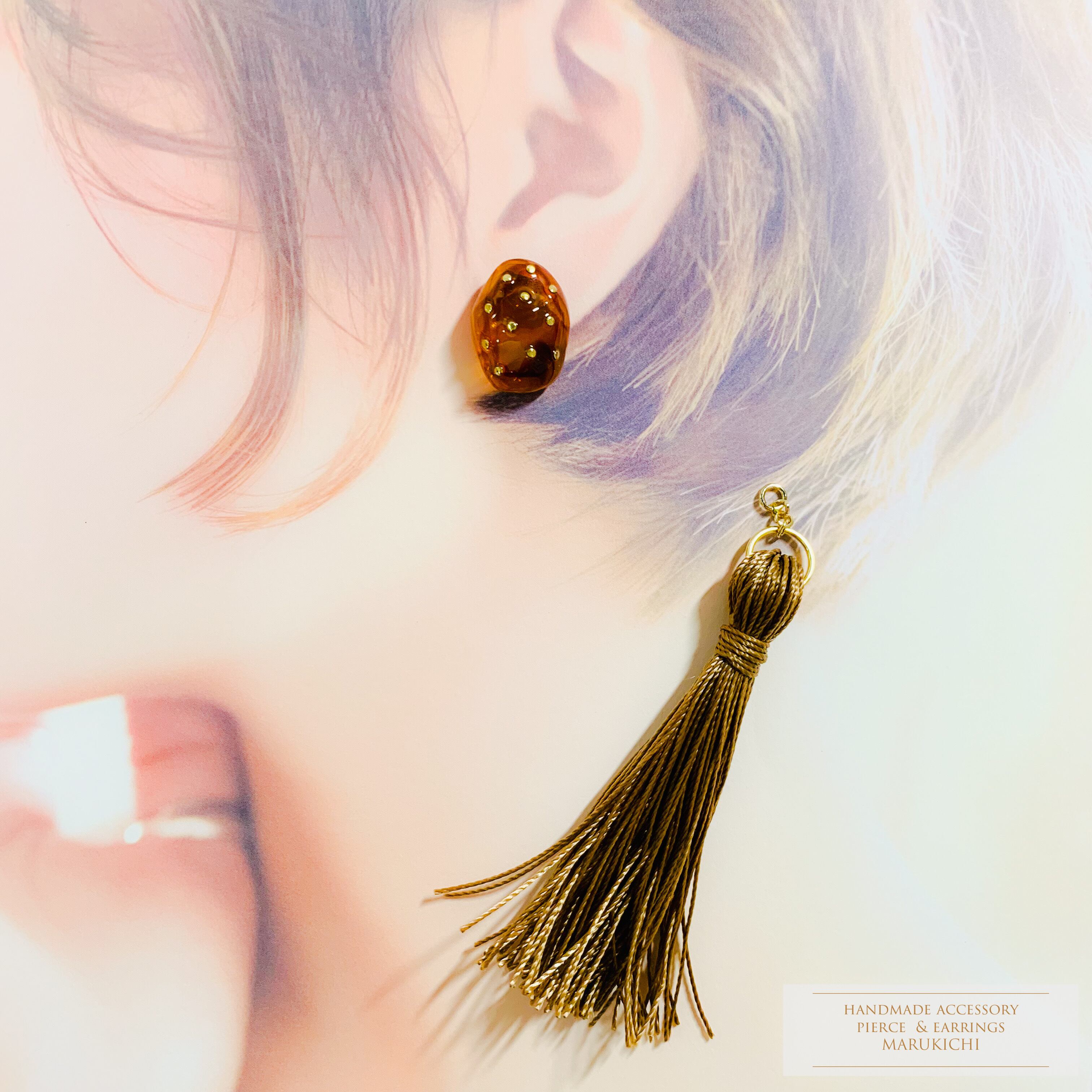ロングタッセルピアス○べっ甲柄×タッセル○ロング2wayピアス