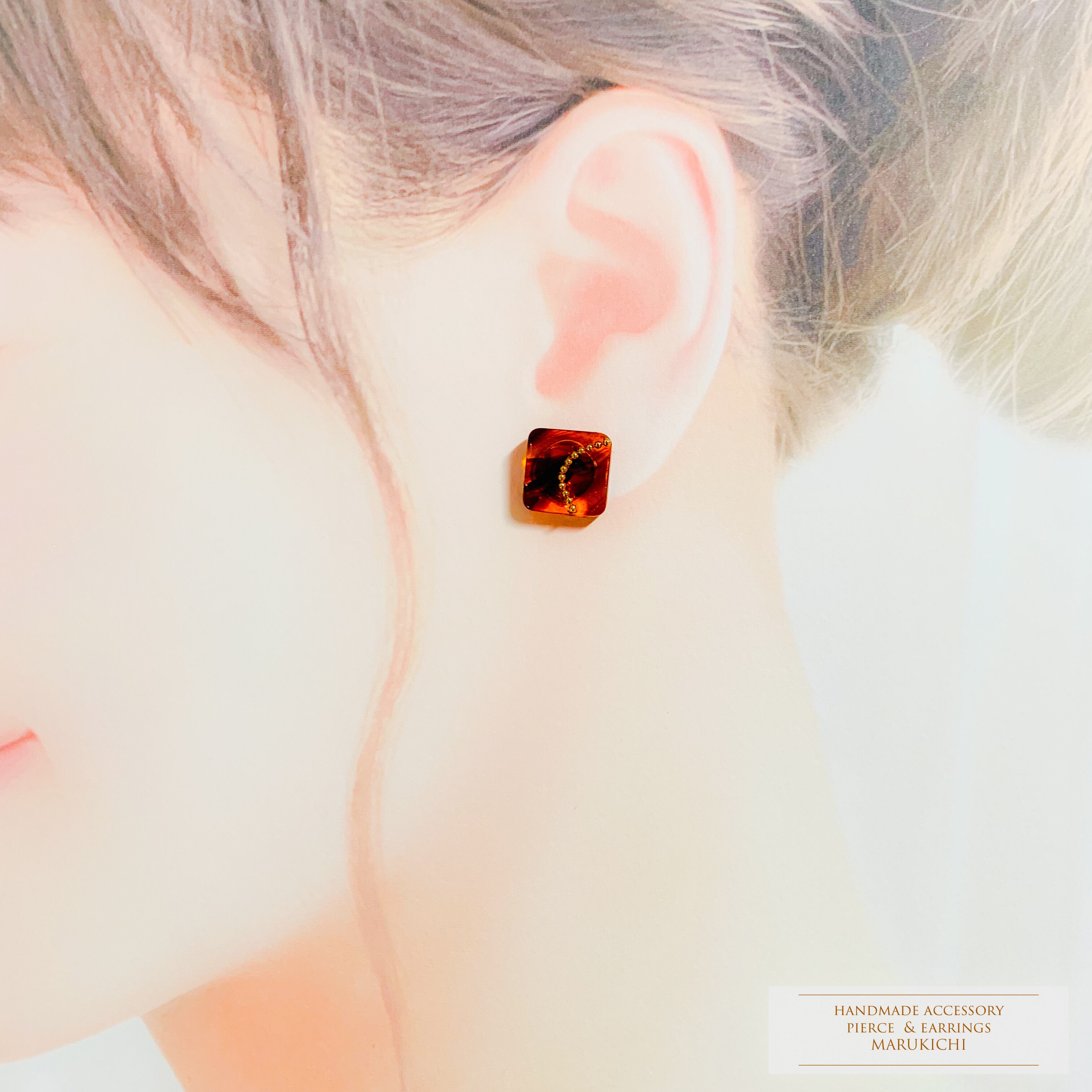 べっ甲柄ピアス○ぽちっとピアス○スクエアシンプルピアス