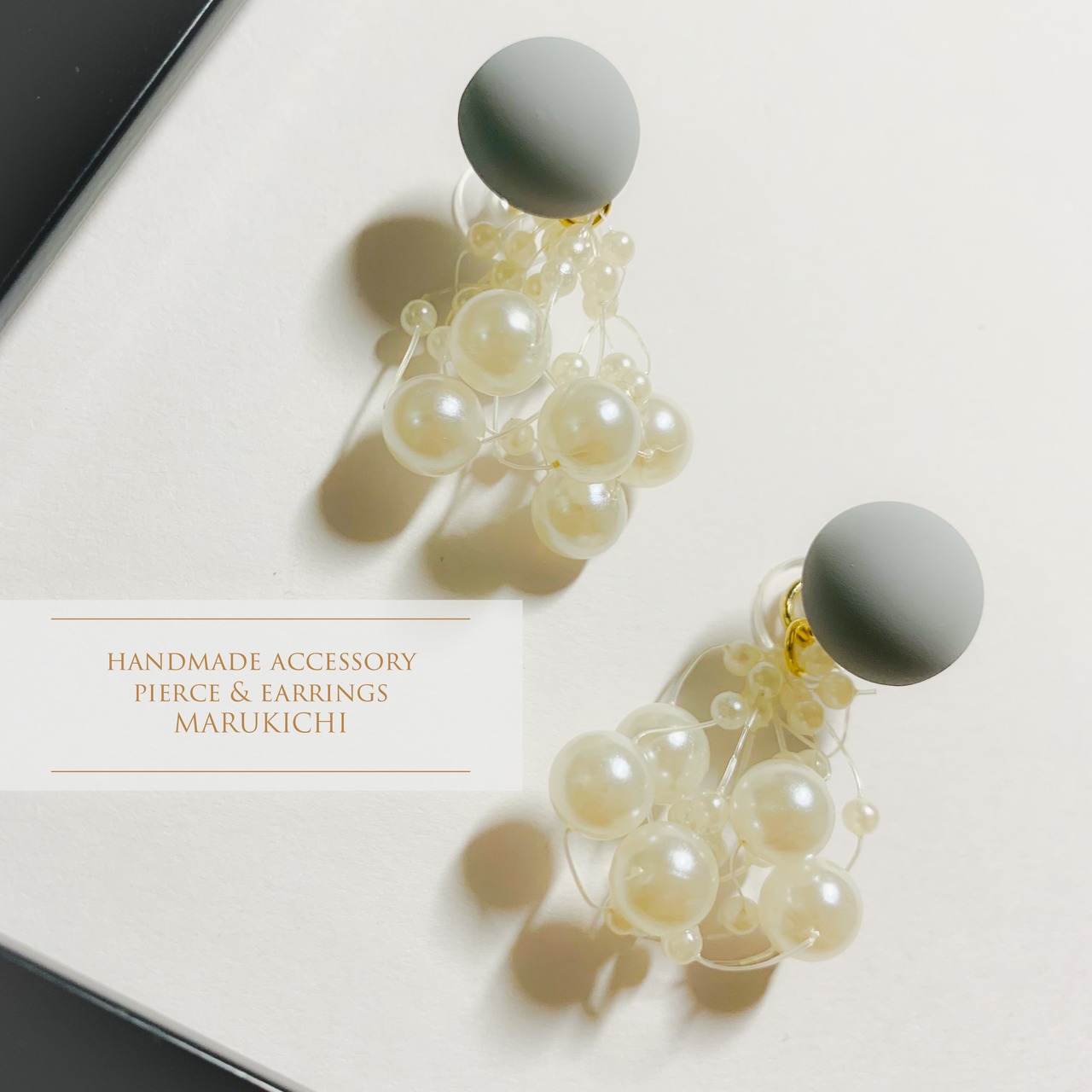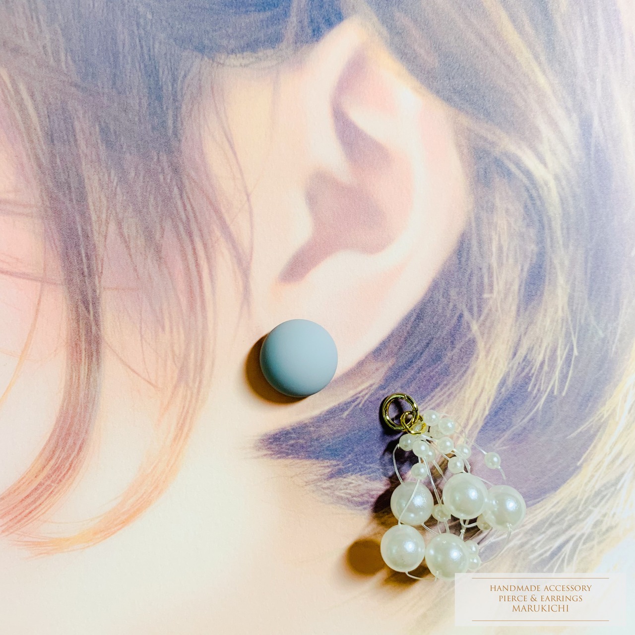 パールピアス○グレー×パール○カボションピアス○2wayピアス