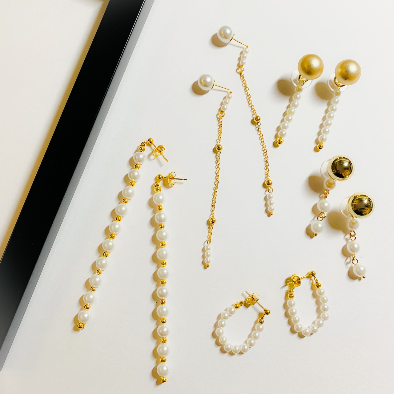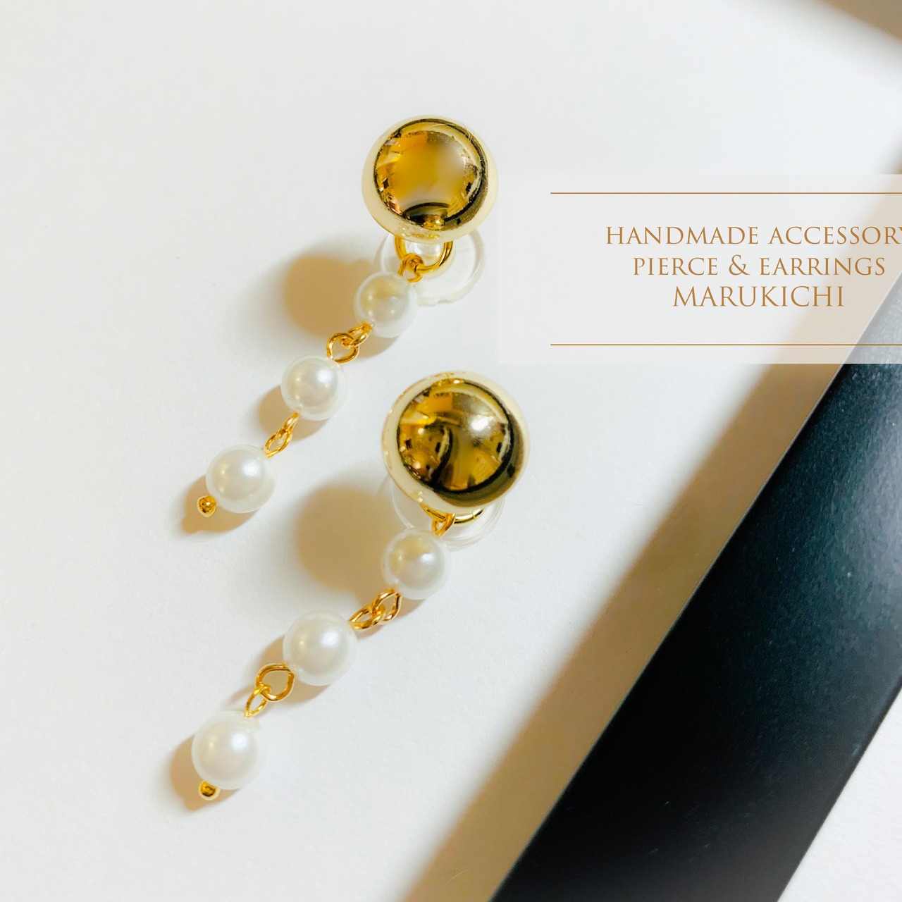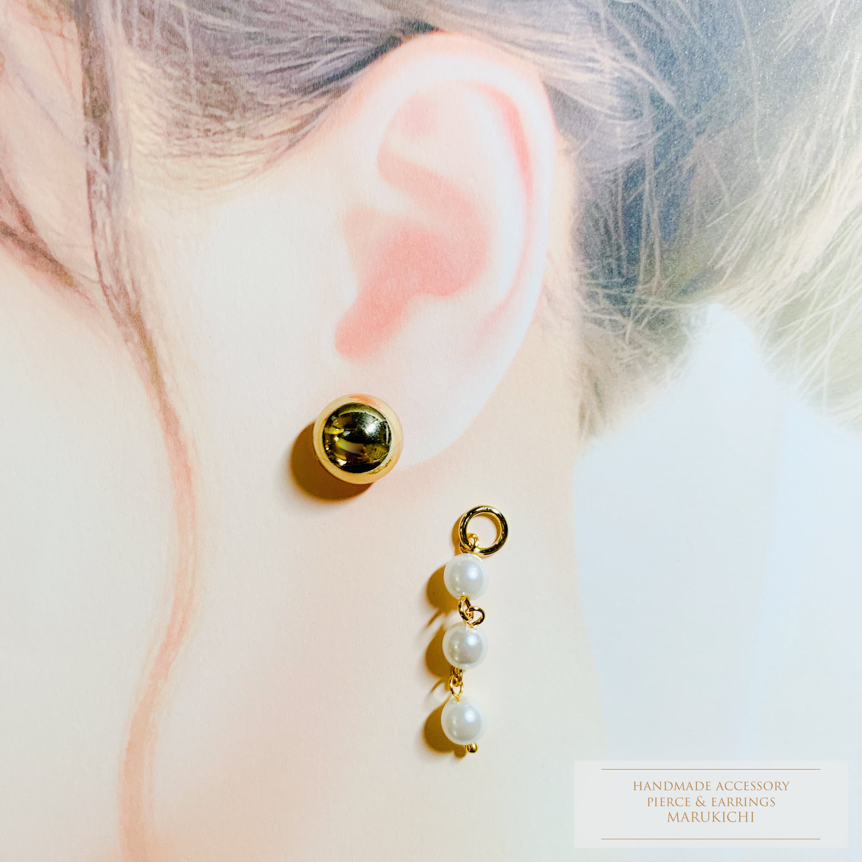 パールピアス○ゴールド×パール○カボションピアス○2wayピアス